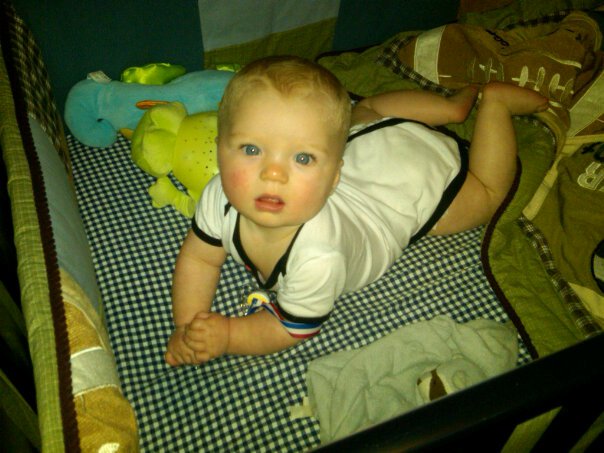 This is how we find him in his cribs most mornings.